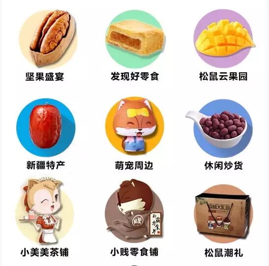 三只松鼠:9个分类(3/6个就取一/两排)