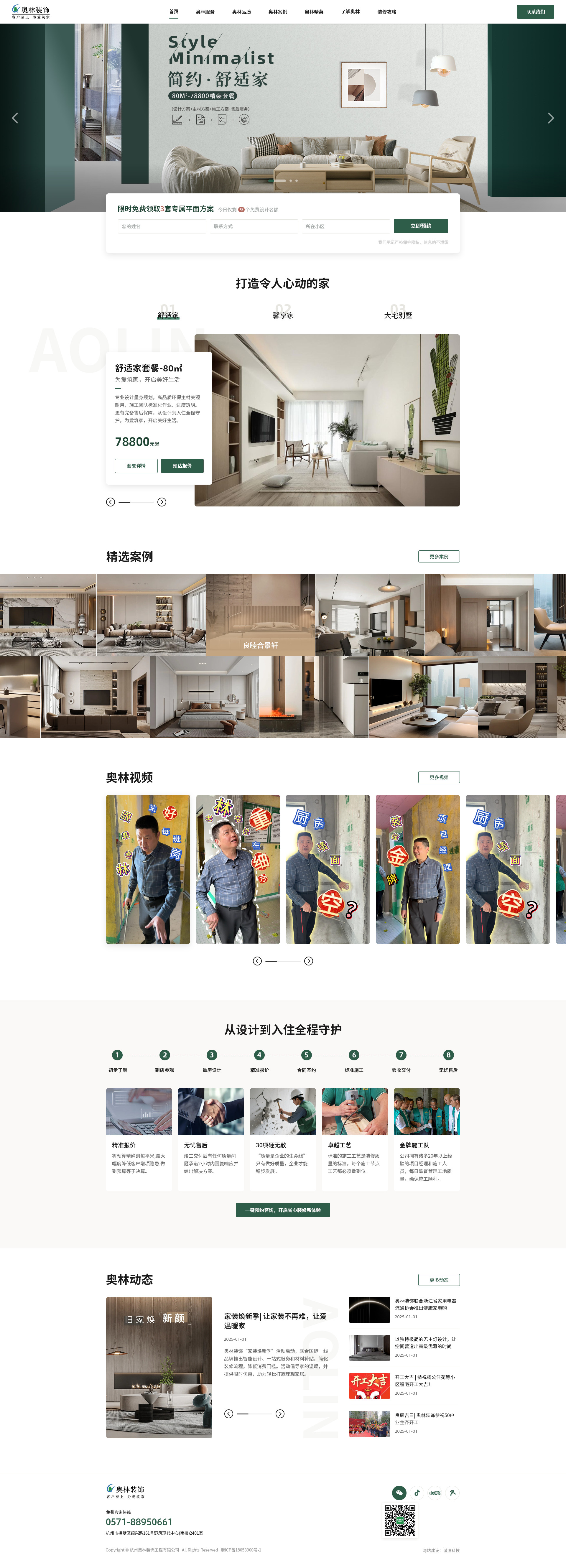 本项目为杭州本地家装企业官网建设,杭州派迪科技整体采用简约风格,视觉上用绿色品牌主色,结合大幅实景家装图片,围绕装修套餐展示、精选案例呈现与施工流程保障进行结构规划。通过案例驱动与视频内容展示增强用户信任感,并结合报价咨询入口优化转化路径,帮助装修企业实现线上获客与品牌升级。
